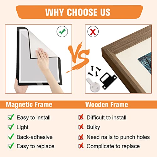 ✅ Usi multipli: la cornice può essere utilizzata per la visualizzazione di certificati/foto/poster e altri articoli, puoi posizionarla sulla parete parallela/verticale, l'elegante cornice magnetica nera è adatta per la decorazione del soggiorno/sala da pranzo, camera da letto, ecc.