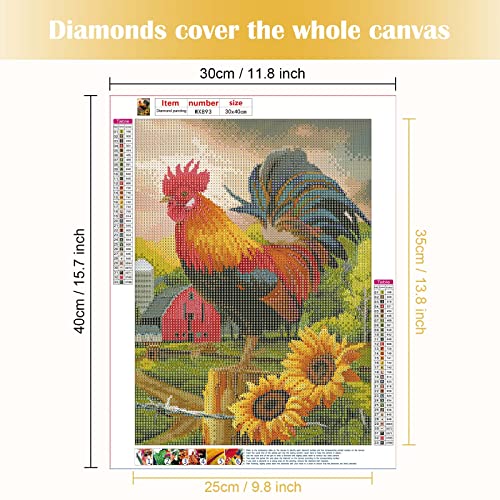 MXJSUA 5D Diamond Painting Gallo Diamond Painting Kit Completo Pittura Diamante fai da te 5D Gallo Diamond Painting Animali Gallo Ricamo Strass Punto Croce Kit per Pittura a mosaico 5D 30X40 cm