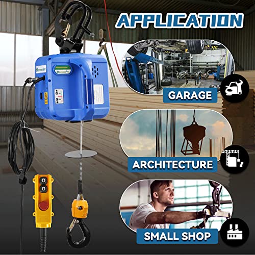 Mxmoonant 1600 W Paranco Elettrico 500 KG con 100 M Telecomandi Senza Fili × 2 per Lavoro di Squadra, Più 5 M Filo Remote, Aggiornato Motor& Ganci per Garage Magazzini Costruzione Domestica 220 V
