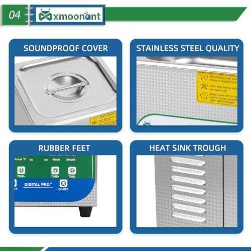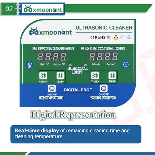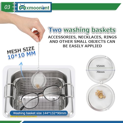Mxmoonant pulitore a ultrasuoni da 2 l, controllo digitale, timer da 0 a 30 minuti, 20-80 °C, 40 KHz, 60 W, modello professionale, con cestino e sfera a maglia fine