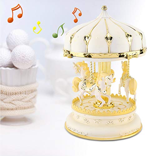 Mxtech Carillon da Sogno, Regalo, 4.7x4.7x7.3 in Carillon Classico per giostra, Romantico Leggero per Ragazza per Donna Regalo di Compleanno Regalo di Anniversario(Golden)