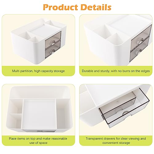 MXTIMWAN Organizer Scrivania, Multifunzionale Portaoggetti da Scrivania, Organizzatore de Scrivania con 2 Cassetto e 5 Scomparti per Scuola, Casa, Ufficio (Bianco)