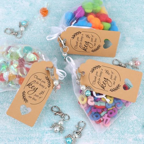 【Regalo Perfetto】: Il sacchetto di organza bianca trasparente può contenere biscotti, caramelle, cioccolatini e altre bomboniere. Il portachiavi angelo ospite può essere utilizzato come decorazione quotidiana, ma anche per altre decorazioni regalo, regali da banco, regali per la chiesa e altro ancora.