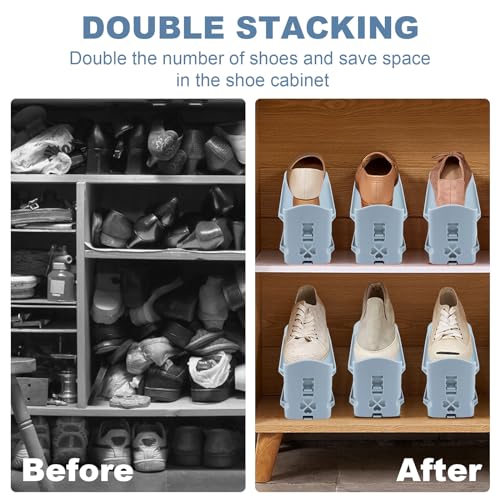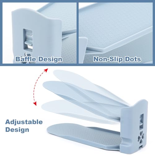 【Set Incluso】: È possibile ricevere 10 pezzi di porta scarpe da armadio salvaspazio blu, le scarpiere possono essere regolate su tre diverse altezze da 8 cm a 19 cm, le scarpiere possono risparmiare molto spazio, aumentare l'uso dello spazio, mantenere le scarpe in ordine e rendere confortevole l'uso.