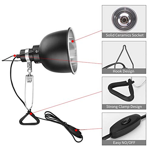 MxZas Reptile Lampada A Raggi Infrarossi Basking Spot Lampada con Gancio, UVA UVB Rettile Lampada for Lizard Turtle Snake Anfibio & Aquarium Pollo Heater Luce (Color: Black, Size: 75W)
