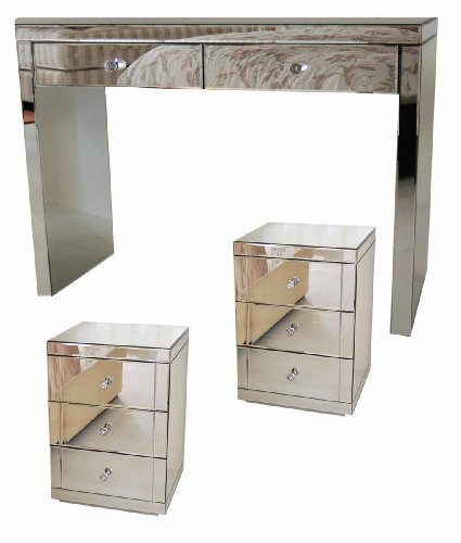MY-Furniture 1 x APHRODITE Toletta-console a specchio e 2 x LUCIA comodini a specchio (Serie Chelsea)