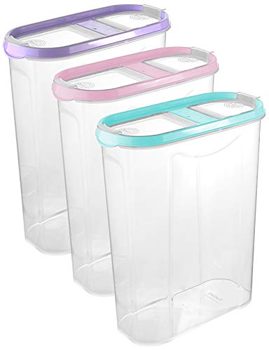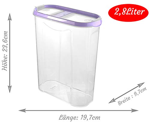 My-goodbuy24 Set di 3 contenitori per cereali e cereali, per alimenti e alimenti, 2 coperchi apribili, impilabili, lavabili in lavastoviglie (3, 2,8 l, mix)