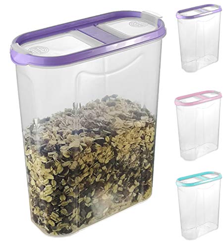 Pratico: ideale per molti alimenti come cereali, cornflakes, pasta, riso, zucchero, frutta secca o anche biscotti. Il coperchio ha 2 alette di chiusura per versare facilmente cereali o corn flakes.