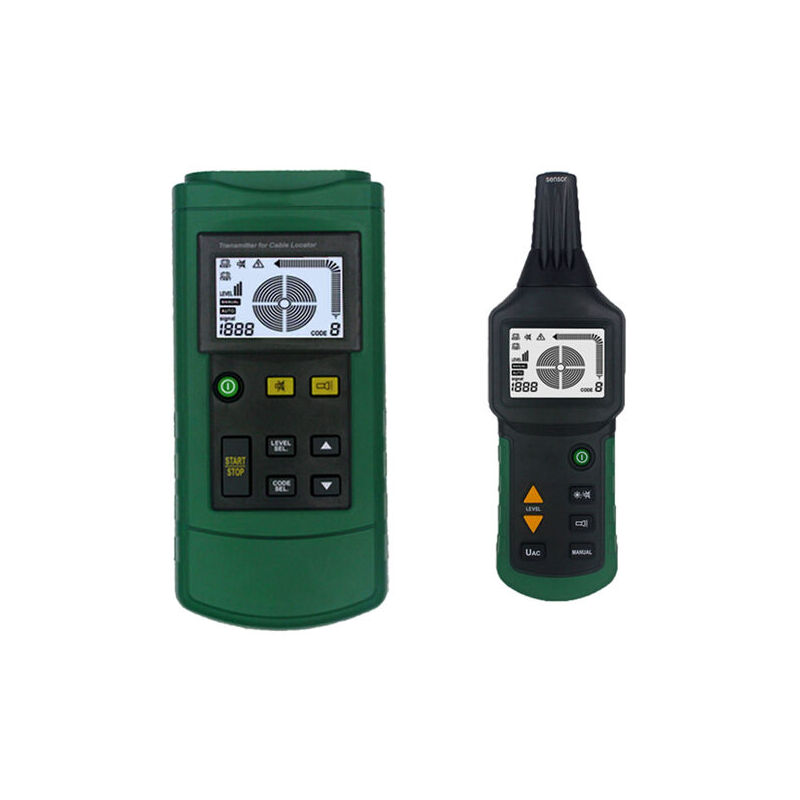 Traccia cavi o sistemi di cablaggio e spesso è necessario determinare se il dispositivo di sicurezza è collegato a un particolare circuito o identificare e tracciare il metallo tubo, tubo di riscaldamento o cavo sotterraneo. Questo rilevatore di cavi può aiutare questi utenti. Caratteristiche: Il segnale trasmesso è codificato digitalmente per garantire che il segnale venga ricevuto chiaramente dal ricevitore, evitando qualsiasi visualizzazione errata causata dal campo d'interferenza . Questo strumento è ampiamente utilizzato nella costruzione di cavi di comunicazione, cavi di alimentazione elettrica, costruzione di condutture, cavi di comunicazione con circuito di alimentazione e sistema di riscaldamento della linea di manutenzione elettrica, è uno strumento indispensabile per il personale di manutenzione della costruzione. Rileva il percorso di posa di cavi, linee elettriche, tubi di alimentazione di acqua e gas interrati nei muri e nel sottosuolo. Rileva guasti rotti o da