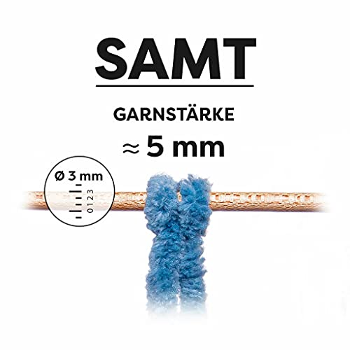 Filato di ciniglia morbido e vellutato con una leggera lucentezza. Con una lunghezza di 100 m su 100 g, il gomitolo XXL in velluto ha un'ottima resa.
