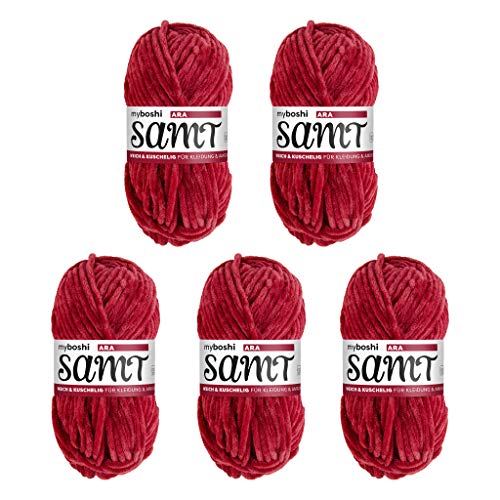 Myboshi - Gomitolo di lana vellutata, morbido filato di ciniglia, XXL, perfetto per amigurumi e cuscini, 100% soffice poliestere, 100 g, lunghezza: 100 m, colore rosso (pappagallo ara), 5 gomitoli