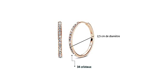 COMPOSIZIONE: Questi orecchini da donna con un diametro di 25 mm sono realizzati in ottone di alta qualità e placcati in oro 18k. La coppia contiene 34 cristalli austriaci di alta qualità da 1,6 mm. La chiusura garantisce una buona aderenza all'orecchio.