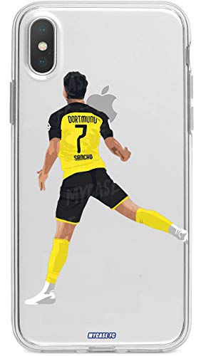 MYCASEFC - Cover calcio Jadon Sancho Dortmund per iPhone XS Max, in silicone trasparente Protezione sottile da calcio per telefono. Fabbricato in Francia