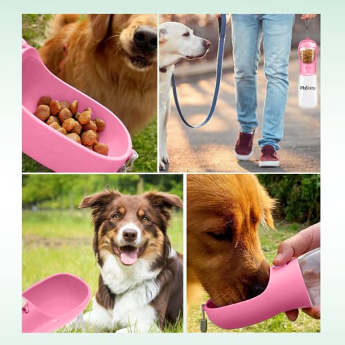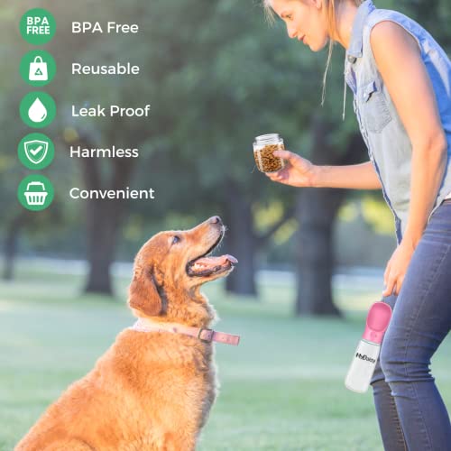Comodo da portare con te/borraccia per cani da portare in giro: la nostra borraccia per cani da viaggio ha una capacità sufficiente e un design compatto della bottiglia d'acqua che la rende ideale per il tuo cane o gatto quando esci all'aperto, cammina, corri, fai escursioni, viaggi o giocare, ecc. Anche il contenitore da 100 g per gli snack è un grande vantaggio per gli accessori del tuo cane. Può anche essere un perfetto accessorio