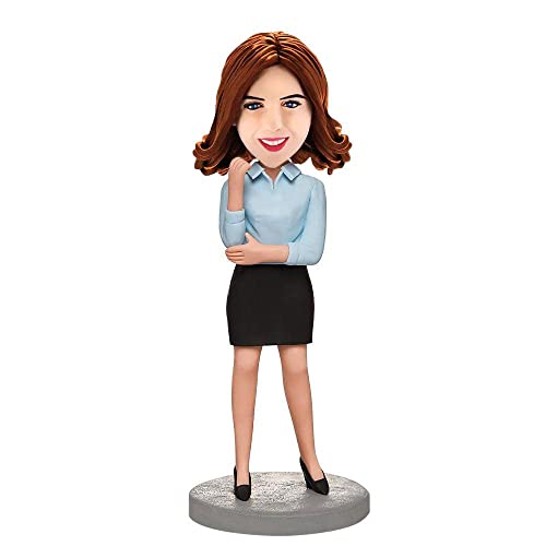 Mydedor Personalizzato Bobbleheads Figurine Bambola Personalizzata, Donna d'Affari con Camicia Blu Testa Bobble Personalizzata