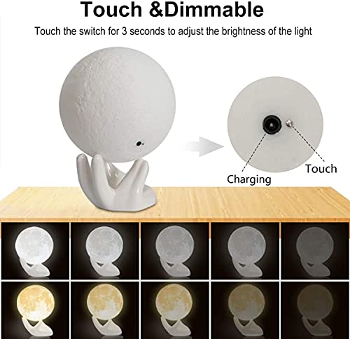 Mydethun 9cm Moon lampada luna luce notturna per bambini regalo per donne di ricarica USB touch control e luminosità due tono bianco caldo e freddo