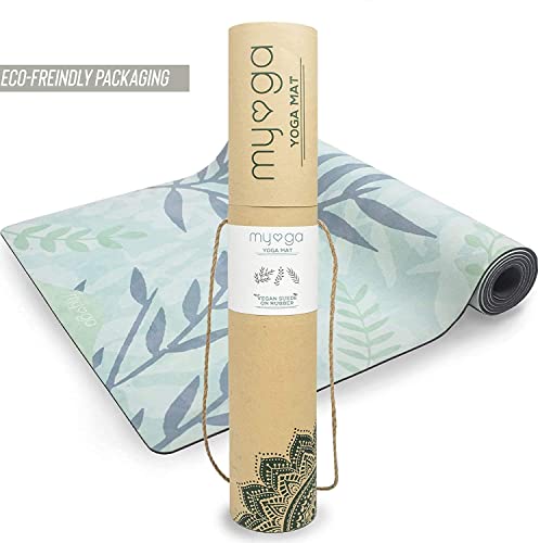 Eco Mat - I lussuosi tappetini da yoga Myga Luxurious sono fatti di una gomma dell'albero naturalmente biodegradabile sul fondo con uno strato superiore in morbida pelle scamosciata vegana.