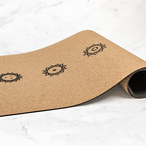 Myga Tappetino da yoga in sughero - Tappetino per esercizi extra large con ottima presa per yoga, pilates, stretching e fitness (Chakra)(205 x 70 cm, spessore 6 mm)