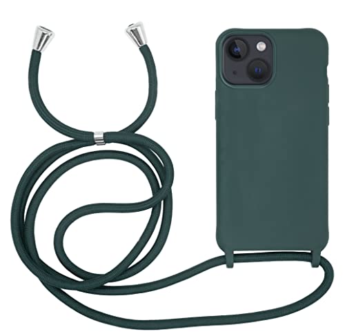 MyGadget Cover con Cordino per Apple iPhone 13 Mini - Custodia con Corda - Case Opaca Antiurto con Laccio | Tracolla - Practical Stylish - Verde Scuro