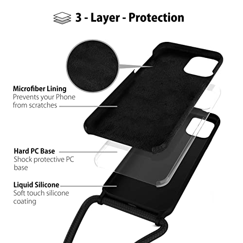 MyGadget Custodia con Cordino per Apple iPhone 13 Mini - Custodia Antiurto in Silicone Morbido - Case 3 Strati in TPU Resistente - Protezione Antigraffio - Nero