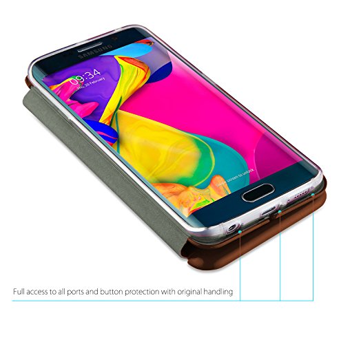 MyGadget Custodia Flip Case per Samsung Galaxy S6 Edge - Portafoglio Funzione Stand - Cover Similpelle PU Classica - Libro con Tasca - Porta Carte - Marrone