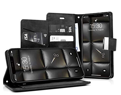 MyGadget Custodia Flip Cover per Apple iPhone X/XS Chiusura magnetica - Portafoglio Funzione Stand & Porta Carte - Case a Libro in Similpelle PU - Nero