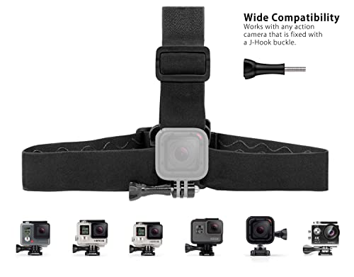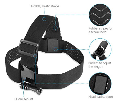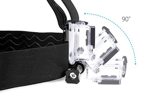 ADJUSTABLE HEADSTRAP - Questo supporto per fotocamera o videocamera di tipo camera di azione è fatto in nylon flessibile di tipo stretch, che si allunga da 15,2 a 30,5 cm. La gomma presenta sulla parte interna offre una presa sicura e antiscivolo.