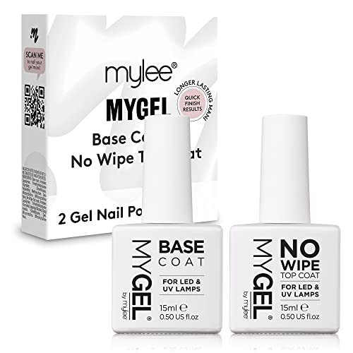 Mygel by Mylee No-Wipe Top & Base Coat per Smalto gel semi-permanente 2 x 15 ml UV/LED soak off nail art manicure pedicure per uso professionale e domestico