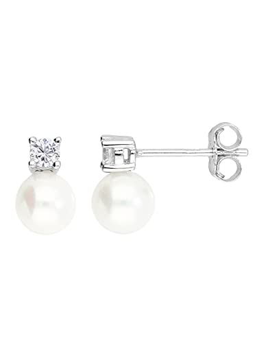 Graziosi orecchini di perle in argento Sterling 925 di alta qualità con due zirconi brillanti e due perle. 100 % privi di nichel e quindi naturalmente anallergici.