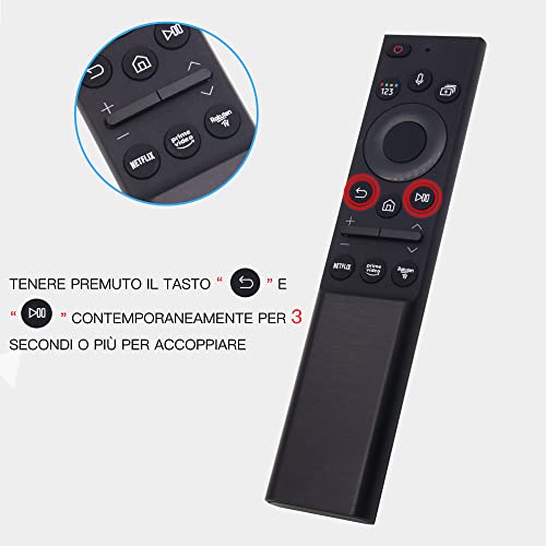 [CONFIGURAZIONE FACILE] Prima di utilizzare Samsung Smart TV, accoppiare questo comando con il televisore. Dopo aver inserito la batteria (non inclusa), tenere premuto il pulsante Indietro durante la riproduzione/pausa per 3 secondi o più per accoppiarsi. (Nota: impostazioni di controllo remoto entro 30cm)