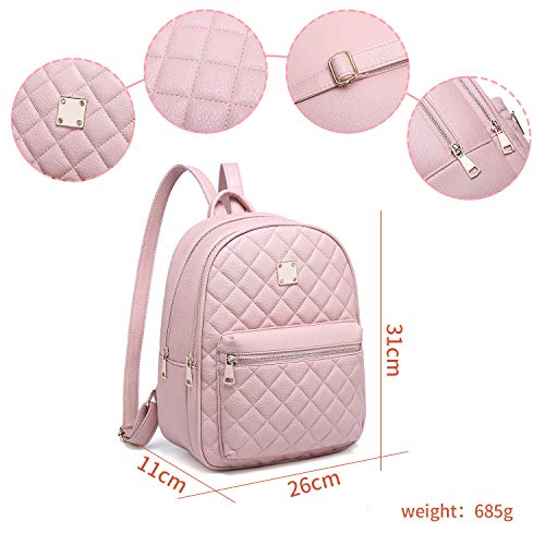 Myhozee Zaino Donna Pelle PU Zainetto Ragazza Casual Rosa Zaini Casual Daypack Backpack per Scuola Viaggio Lavoro Shopping,Rosa