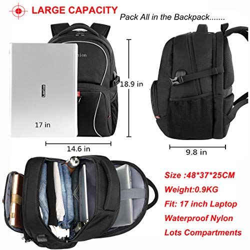 Myhozee Zaino Scuola Zaino Uomo Donna Zaino per laptop 17,3 Pollici, Zaini Viaggio Borsa Zainetto in impermeabile Nylon Zaini Unisex Adulto Backpack Multifunzionale Daypack (Nero)
