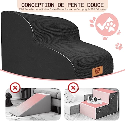 Myiosus Scala per cani a 2 gradini, Rampa Cani in spugna, Scale per Animali, Passeggiate Divano Gatto con Copertura in Tessuto Rimovibile per Letti Alto e Divano (nero)