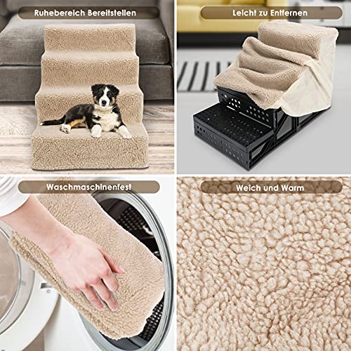 Myiosus Scaletta per Cani a 4 Gradini, Lavabile Rimovibile Scale per Cani Grandi, Antiscivolo Rampa per Cani Gatti per Letto & Divano, con Corda Giocattolo