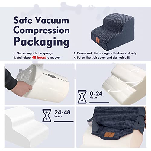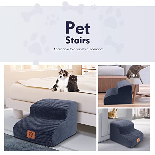 Myiosus Scaletta per Cani 2 Gradini, Scale per Cani di Piccola Taglia, Gradino per Cani in Schiuma per Divano e Letto, Antiscivolo, Rimovibile, Lavabile, Blu