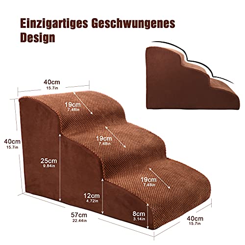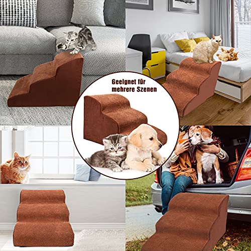 Myiosus Scaletta per Cani 3 Gradini, Scale per Cani di Piccola Taglia, Scaletta per Animali Domestici in Schiuma per Divano e Letto, Antiscivolo, Impermeabile, Rimovibile, Lavabile, Marrone