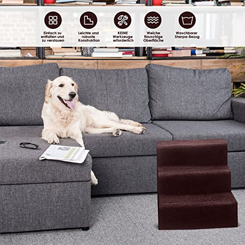 Myiosus Scaletta per Cani 3 Gradini, Scale Plastica per Animali Domestici di Piccola Taglia, Rampa per Cani con Rimovibile Lavabile Copertura, Scale per Animali Domestici per Divano Letto
