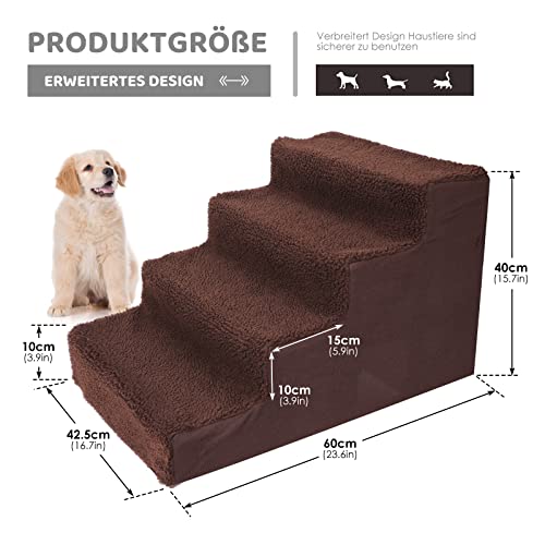 Myiosus Scaletta per Cani 4 Gradini, Scale Plastica per Cani di Piccola Taglia, Rampa per Animali Domestici con Rimovibile Lavabile Copertura, Scale per Animali Domestici per Divano Letto