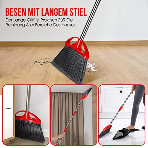 Myiosus Set di scopa e paletta, 2 in 1, paletta con manico lungo, per casa, cucina, camera da letto, ufficio, pavimento