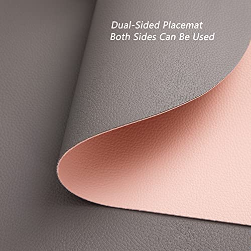 Myir JUN Tovagliette Americana Bifacciale in Pelle, Tovagliette Americane Plastica Lavabili Non-scivolose Resistenti al Calore Tovaglietta Set di 4 Tovagliette e Sottobicchieri (Rosa Grigio)
