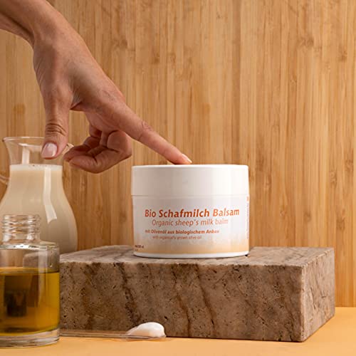 Il balsamo di latte di pecora biologico ha un contenuto extra elevato di latte di pecora biologico e olio d'oliva da coltivazione biologica controllata.