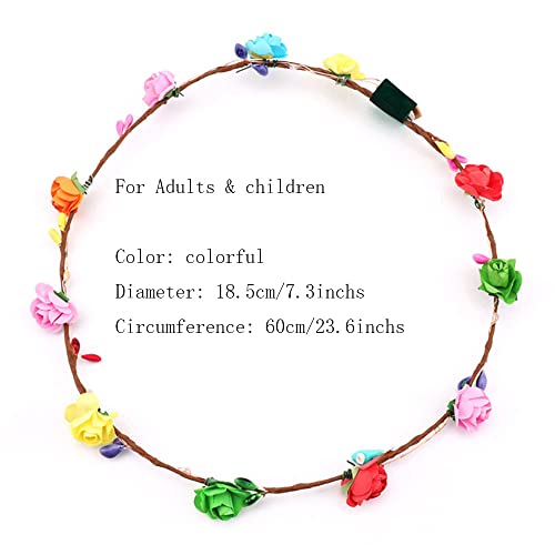 MYKOMI Fascia per capelli floreale con 12 LED, corona di fiori luminosa, ghirlanda per capelli, per donne e ragazze, per matrimoni, feste, Natale, Halloween, festività colorate