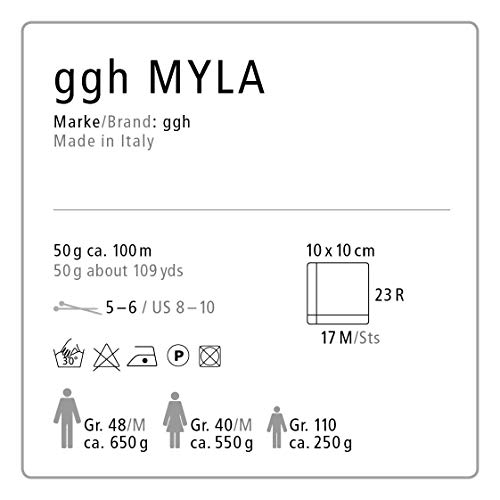 Le belle e armoniose combinazioni di colori in colori naturali e autunnali rendono ggh-MYLA uno dei preferiti per la stagione autunno/inverno. Con una lunghezza di 100 m a 50 g, ggh-MYLA non è solo una lana perfetta per le mezze stagioni, ma anche ideale per le giornate autunnali e invernali. Le sfumature di colore finemente coordinate garantiscono una lavorazione a maglia emozionante e vivace.