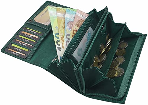 Myledershop Grande vacchetta portafoglio per donna con blocco RFID & NFC (Verde Scuro)
