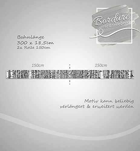 Bordo autoadesivo: dopo aver ricevuto il motivo desiderato (2 pezzi x 150 x 20 cm), staccare la pellicola protettiva sul retro e attaccare la carta da parati autoadesiva nel punto desiderato della parete.