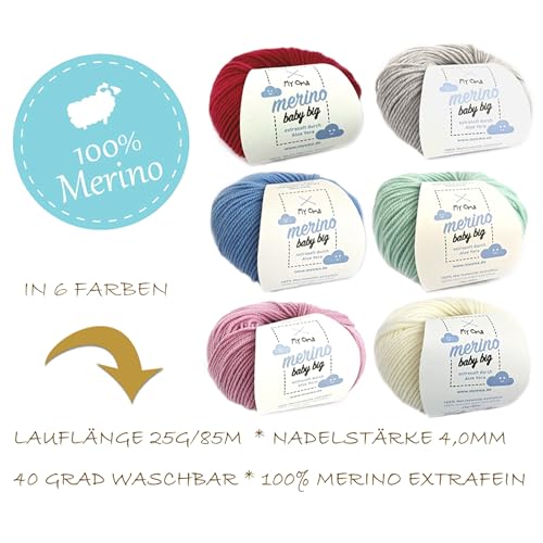 MyOma: la lana merino Baby Big super morbida è disponibile in 5 colori delicati: bianco naturale, grigio chiaro, menta, peonia e nuvola. La lana merino per neonati è realizzata al 100% in lana merino di alta qualità extra fine, è molto morbida grazie all'aloe vera, garantita delicata sulla pelle, priva di sostanze nocive e facile da pulire.