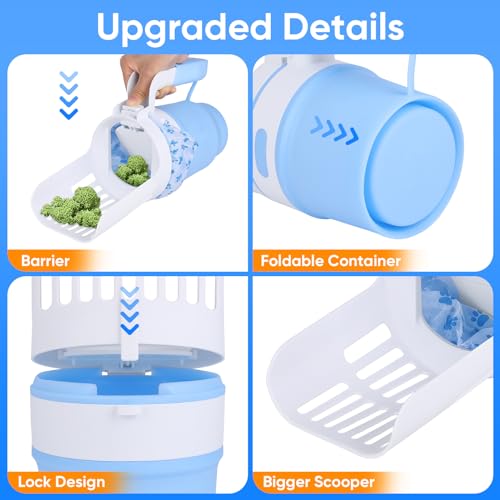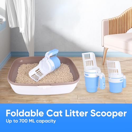 MYPIN Paletta per Lettiera Gatto Pieghevole con Contenitore, Paletta con Sacchetto per Lettiera Gatti, Portatile Cucchiaio per Lettiera Gatti con 180 Sacchetto (Blu)