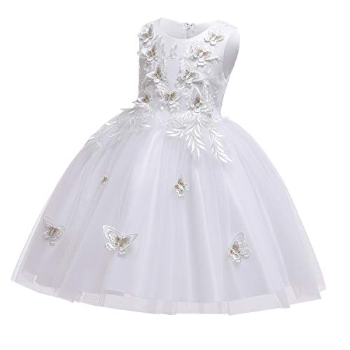 MYRISAM Abito da principessa con farfalle e ricami di compleanno, concorso di nozze fiore ragazza abiti da ballo 3-12T - Bianco - 9-10 Anni