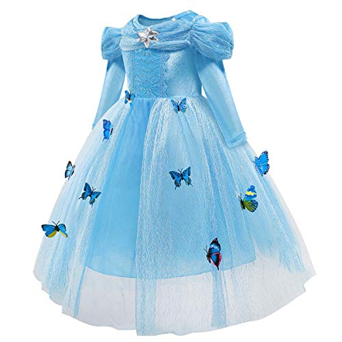 MYRISAM Ragazze Abito da Principessa Cenerentola Manica Lunga Costume di Carnevale Halloween Cosplay Feste in Maschera Natale Cerimonia Compleanno Partito Abito a Farfalla con Accessori 2-3