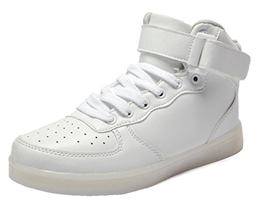 Myroads Unisex Adulto Carica 7 Colore USB LED Lampeggiante Luminosi Alto Top Sneaker Scarpe Sportive (Bianco EU 42)